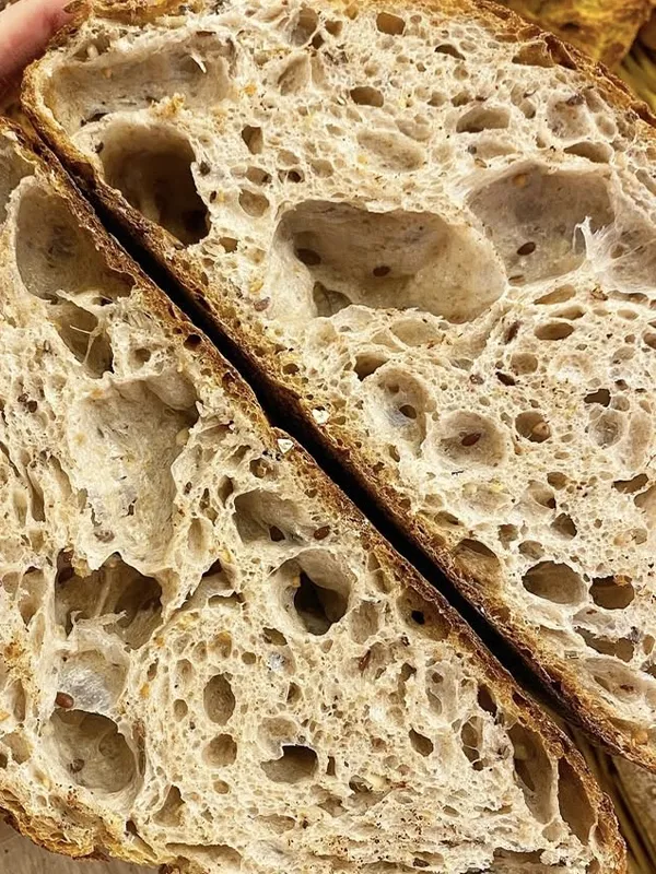 - Le Viking (farine T65, base tradition française, levain de seigle, mélange de graines, sirop de malt torréfié et flocons d'avoine pour le côté "crunchy").